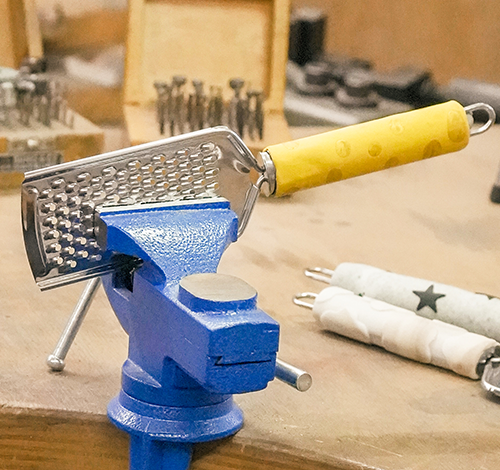 • Den Griff nach dem Abkühlen mit Schutzlack bestreichen, sodass die Käsereibe auch intensiven Reibereien standhält.