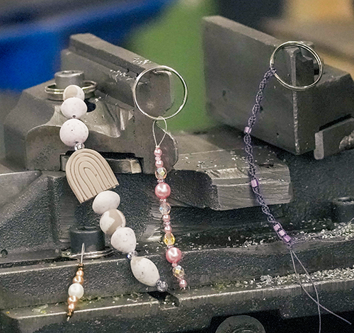 Fimo, Zahnstocher, Nylongarn oder Schmuckdraht, Perlen, Quetschperlen